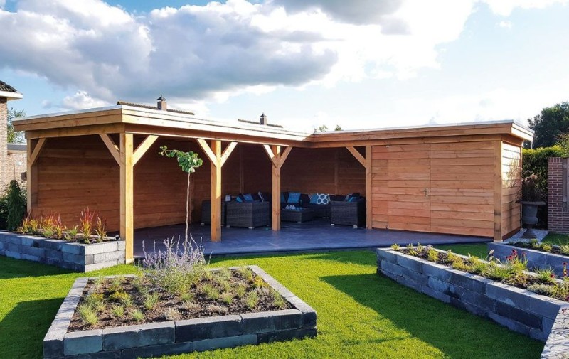 Liever een natuurlijke uitstraling? Dan is een Douglas houten overkapping een sfeervolle keuze.