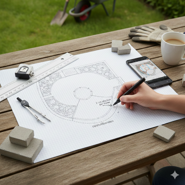 Voordat u begint met het plaatsen van de opsluitbanden is het goed om een schets te maken van hoe u wilt dat uw terras of pad eruit komt te zien.